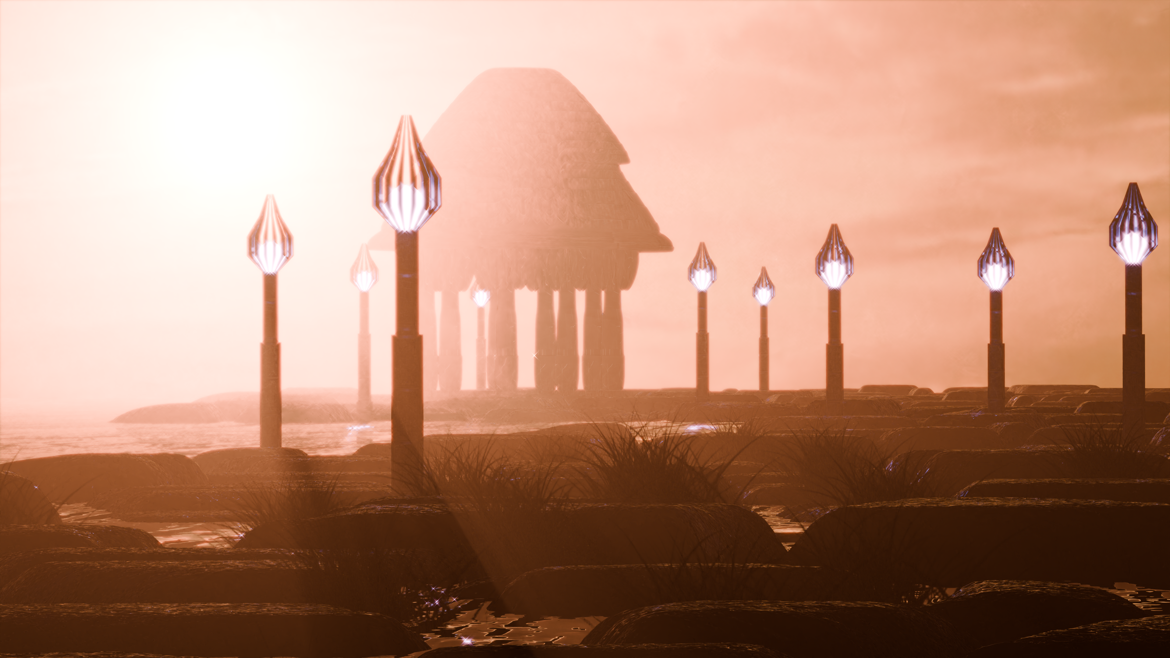 Recently made in Blender using PBR textures. A calm and tough path to walk. Rocky environment next to reflective water.